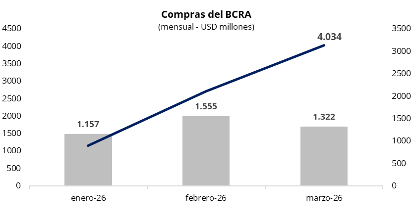 El Banco Central compró USD 48 millones en una rueda con un volumen operado cercano a los USD 335 millones. De esta manera, el BCRA acumula compras por USD 1.322 millones en marzo y USD 4.034 millones en lo que va del año. Asimismo, la autoridad monetaria adquirió cerca del 14% del volumen operado en el mercado, muy por encima del target de participación establecido en 5%.